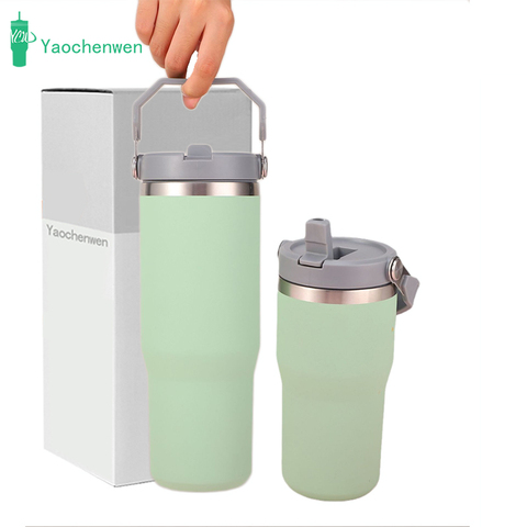 Nueva llegada 4,0 taza térmica a prueba de fugas de doble pared con aislamiento al vacío para viajeros 40oz con asa y pajita