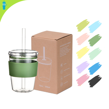 2025 Novo Ambientalmente Amigável 12oz Copos De Vidro Milktea Frio com Silício Tritan Palha Capa